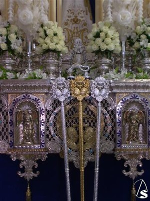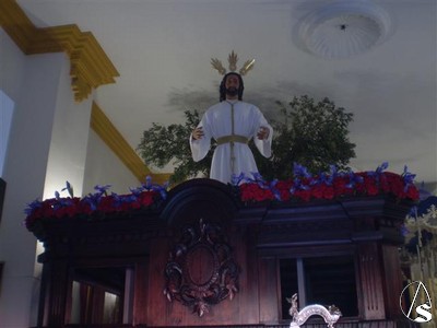 En las fotos que les mostramos aparece el Cristo el Viernes de Dolores en el nuevo paso pero aun sin terminar, faltándole las cartelas y los candelabros.