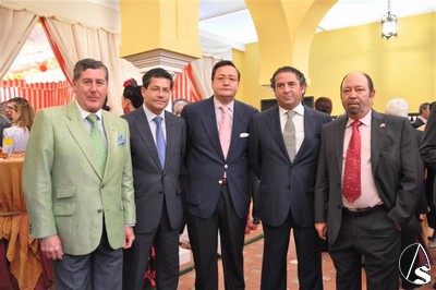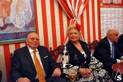 Francisco Santiago. La segunda teniente de alcalde, delegada de Turismo y Fiestas Mayores, Rosamar Prieto-Castro, presidió el martes, 20 de abril, la recepción dedicada a las Hermandades de Sevilla y al sector turístico en la Caseta Municipal. En la foto junto a Adolfo Arenas, Presidente del Consejo.