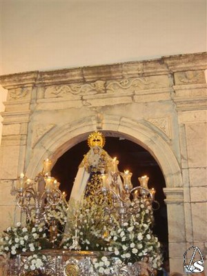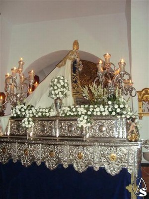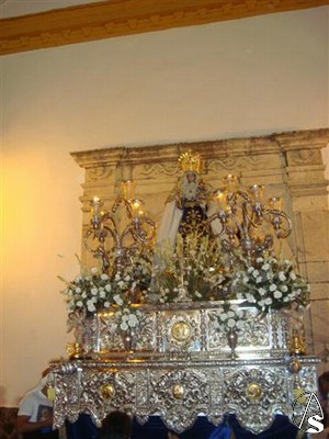 La Virgen procesiona en un paso de plata y llevado por costaleros al estilo sevillano. En la delantera del paso figura una imagen en plata del Cristo del Crucero, patrón de la localidad.