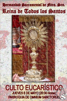 Arte Sacro. Hoy jueves 6 de mayo la Hermandad Sacramental de Nuestra Señora Reina de Todos los Santos celebra Culto Eucarístico en honor a Jesús Sacramentado.