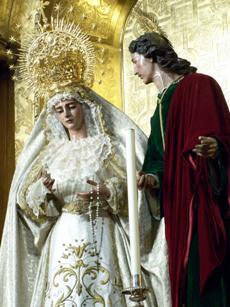 La Virgen de Gracia y Esperanza con San Juan en el altar del Señor de las Penas