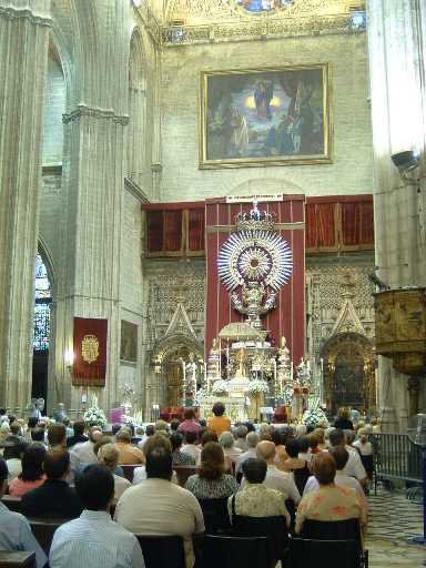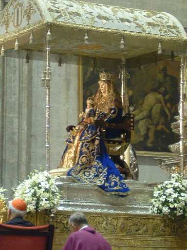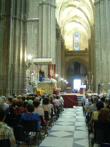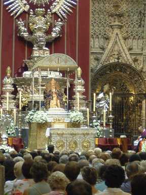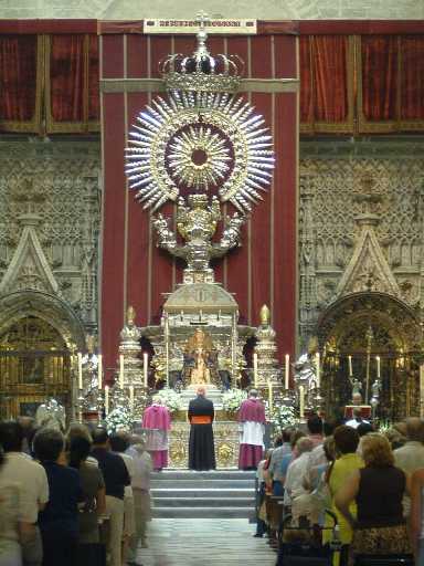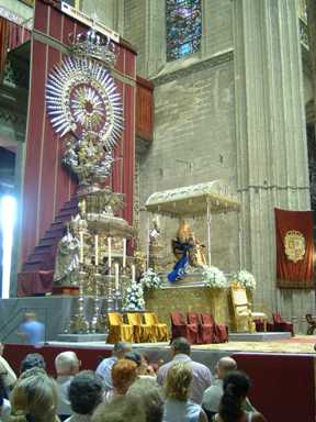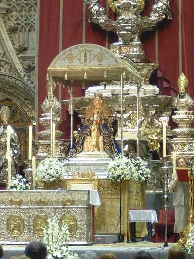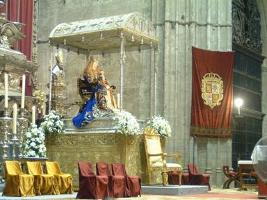 El pasado sábado 6 de agosto comenzó, un año más, la tradicional novena en honor de la que es la Patrona de Sevilla y de toda su Archidiócesis, Nuestra Señora de los Reyes. Durante los días previos a su salida, la Señora se nos presenta con el manto azul marino, hasta que por fin confirme el Cabildo de la Santa Iglesia Catedral el manto que lucirá la bendita imagen en su salida matutina del próximo lunes 15 de agosto, festividad de la Asunción de la Madre de Dios.
