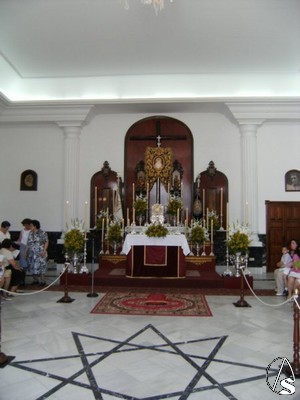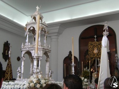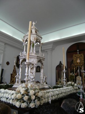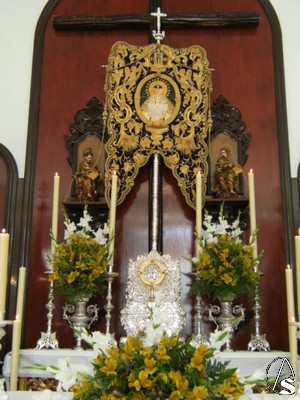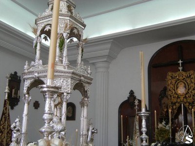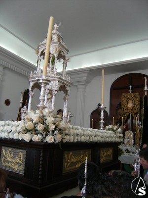 En su interior, un esplendoroso altar montado con todo el cariño por el grupo de priostía para que el Santísimo Sacramento volviera a bendecir el Oratorio de la Hermandad de la Soledad, un año más.