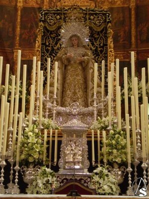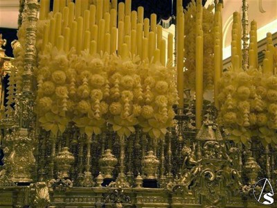 Y mientras que la Estrella recibe su triduo extraordinario en la Catedral trianera son muchos los que pasan por su capilla y pueden apreciar con todo lujo de detalles su hermoso paso de palio, cuajado de velas rizadas tras muchos años y con los nuevos varales, el gran estreno de esta salida extraordinaria.