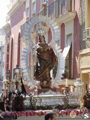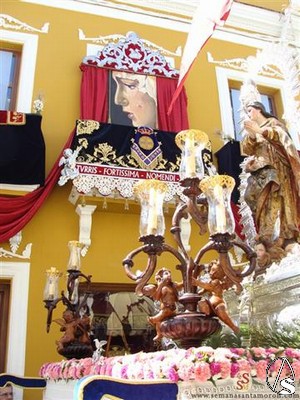 Varias Hermandades de Penitencia antecedían el segundo de los pasos, el de la Inmaculada Concepción, patrona también de Morón de la Frontera y que procesionaba por vez primera con la nueva ráfaga que fue bendecida en el pasado mes de Mayo aprovechando una visita del Arzobispo de Sevilla, Monseñor Asenjo.