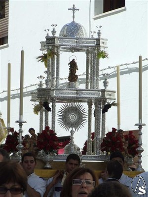 El Cortejo esta formado por la cruz parroquial y ciriales, niños vestido de comunión, representación de todas las hermandades de la localidad con estandarte y varas, hermandad sacramental con cirios, coro parroquial de la Purísima Concepción la magnífica Custodia del Santísimo, presbítero y palio.