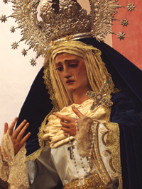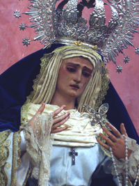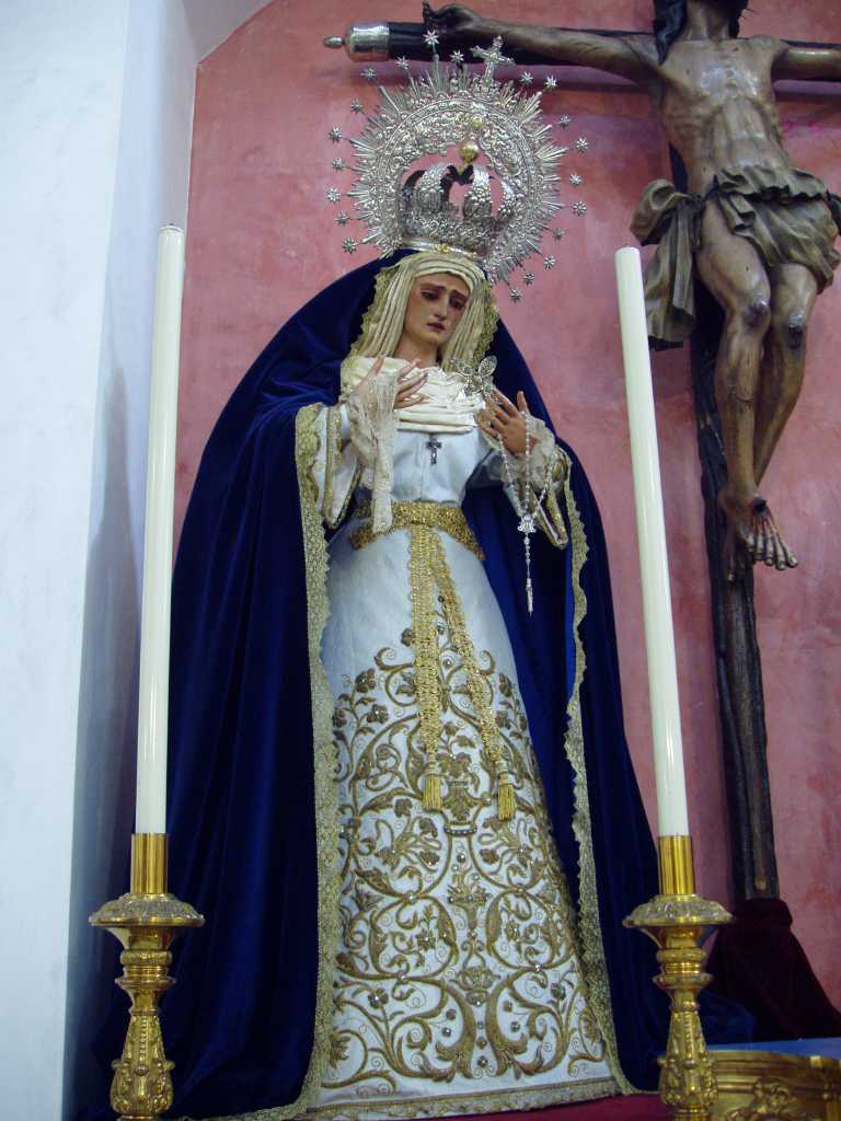 ArteSacro. Para terminar esta penúltima semana del este especial de las vírgenes de blanco vamos a rematarlo con la Virgen de las Lágrimas, titular de la Hdad de la Exaltación, que actualmente y de manera provisional radica en la Parroquia de San Román, aunque, no hace de aquí su Estación de Penitencia,ya que la hace de la Iglesia de los Terceros.