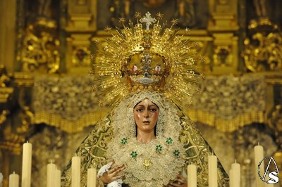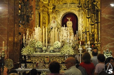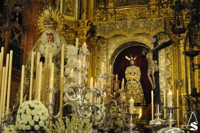 Arte Sacro. Otra de las estampas inéditas o que hace mucho tiempo que no se repite, es la ubicación desde esta mañana, del Cristo de la Sentencia en el altar mayor de la basílica Macarena, lugar que ocupa habitualmente la Esperanza, tal y como muestran las imágenes y solo por un día.