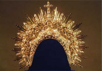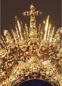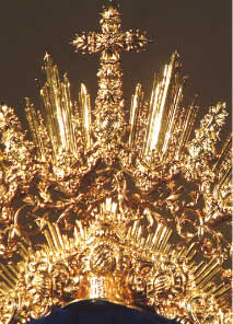 Francisco Santiago. Les mostramos la nueva diadema para María Santísima de las Angustias que ha diseñado y labrado por ambas caras el orfebre trianero Ramón León y que se puede admirar este fin de semana en el Templo de la Hermandad de Los Gitanos.