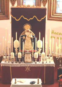 En el transcurso del acto se procedió a la bendición de la talla de Santa Ángela de la Cruz para el paso procesional, realizada por Miguel Bejarano y que se estrenará en la salida del próximo sábado, 10 de septiembre. Hay que destacar la magnífica labor de la priostía, que para esta Función han conseguido un Altar de Cultos realmente impresionante y de gran gusto.