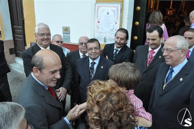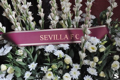 Una hora después, fue el Sevilla F. C. el que acudió a la cita, con su presidente José María del Nido a la cabeza. Un gran centro de flores fue ofrecido a la Dolorosa del Rosario, procediéndose después a la imposición de la insignia de oro del Club de Nervión. De nuevo la firma en el libro corporativo y la entrega de recuerdos por ambas partes puso fin a los regalos en la onomástica de la Virgen del Rosario.