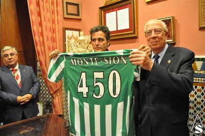 El primero en darse cita en la calle Feria fue la del Betis, con una representación encabezada por Jaime Rodríguez Sacristán, su presidente, los cuales hicieron entrega de un ramo de flores y, posteriormente la imposición de la insignia del club. Posteriormente en la casa hermandad, firmó en el libro de visitas y se entrego una camiseta en cuya espalda, se puede leer en grandes letras “Monte-Sión 450”, en alusión a la efeméride que está celebrando la Hermandad.