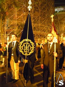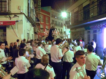 Abriendo el cortejo procesional, fue la banda de cornetas y tambores de San Juan Evangelista, hasta la plaza de la Encarnación, y fue sustituida por la banda del Stmo. Cristo de las Tres Caídas, hasta la entrada al templo de San Martin.