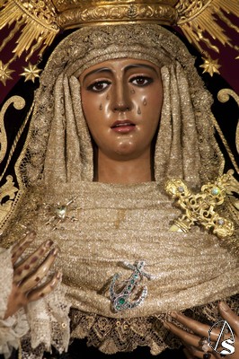 De nuevo hay que resaltar el buen hacer del vestidor de Nuestra Señora de la Esperanza, Javier Hernández Lucas, el cual nos deleita cada vez que viste a esta imagen.