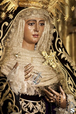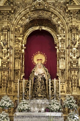 El motivo de que esté la Virgen fuera de su camarín es por la realización de unos ajustes al sistema de bajada de la dolorosa trianera.