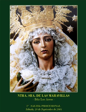 Arte Sacro. Será hoy dia 10 de septiembre cuando Ntra. Sra. de las Maravillas procesione por primera vez por las calles de su barrio de los Arcos. Irá acompañada musicalmente por la Banda de música de "Guadalrosal" del sevillano pueblo de los Rosales.