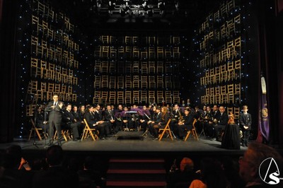 El periodista Paco Robles realizó la I exaltación a la música “Madre Cigarrera” en el que dedicó bellas palabras a los músicos en general y a los de las Cigarreras en particular. También hubo momentos para la habitual “gracia sevillana” de Robles, que comentó, viendo el decorado del escenario que pueden ver ustedes en las fotos, como se había solucionado el problema de las sillas en la Campana para que el Consejo de Cofradías tomara buena nota de la posición de las mismas.
