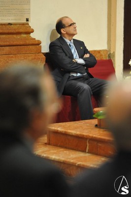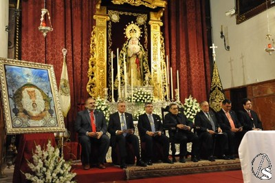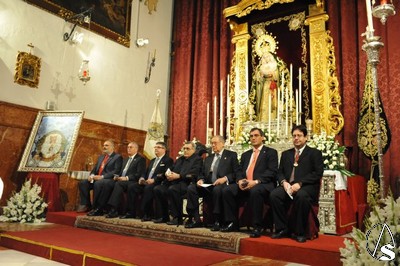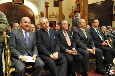 Estuvieron presentes el párroco de San Roque, los hermanos mayores de la hermandad anfitriona, San Roque, Macarena, Esperanza de Triana y Trinidad, teniente de hermano mayor de la O y Sagrada Lanzada y por parte del consejo de cofradías estuvo el delegado del Domingo de Ramos Francisco Vélez de Luna.