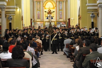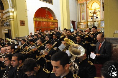 La parroquia estaba repleta de personas, tanto sentadas en los bancos como de pie, demostrando que, aunque estemos en tiempo de Villancicos, los cofrades todavía apuran los últimos conciertos de marchas procesionales de este año 2010.
