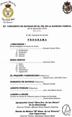 Arte Sacro. Con ocasión del XV Concierto de Navidad, la Banda de Música Ntra. Sra. de la Victoria - Las Cigarreras - ofrecerá en la S. I. Catedral de Sevilla y encuadrado en los actos que con motivo de la festividad de la Sagrada Familia, esta Asociación Filarmónica viene celebrando desde la fundación de la entidad musical.