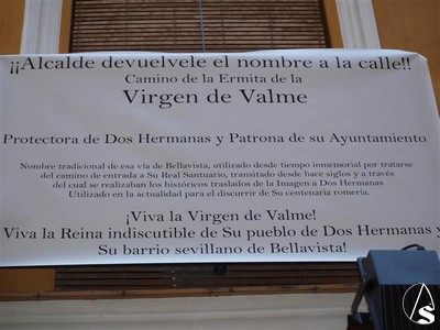 Es por este motivo, y ya en la pasada Romería de la Virgen se pudo ver en algunas casas de Bellavista, que nos encontramos con esta pancarta reivindicativa en pleno centro de la ciudad de Sevilla. El texto que se puede leer es el siguiente: