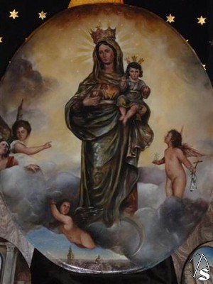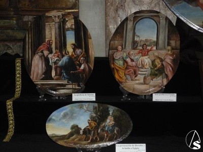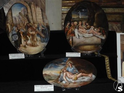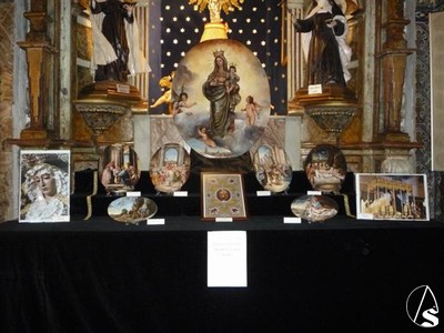 Arte Sacro. El pasado 14 de enero, acogido por las centenarias naves de la Iglesia Conventual de los RR. PP. Carmelitas Descalzos del Santo Ángel de Sevilla, vieron la luz pública, por vez primera, las 7 pinturas que componen el Programa Iconográfico del Techo de Palio de la Soledad de Moguer, realizado por el pintor sevillano Antonio Díaz Arnido, en una Exposición organizada para presentar dichos enseres procesionales.