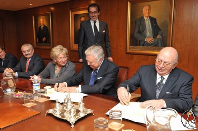 Antes de esto tuvo lugar la firma del convenio de colaboración entre la Fundación de la entidad bancaria y el Consejo de Cofradías. Fue rubricado por el presidente del consejo, Adolfo Arenas y el presidente de la Caja Rural del Sur, José Luis García Palacios.