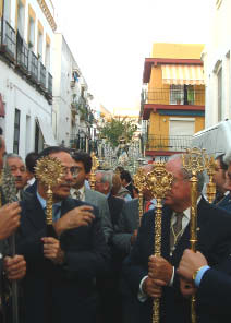 Cuando la Virgen salia de su parroquia, los cohetes surcaron el cielo de Triana, como también lo harían, en esta segunda ocasión de colores, para anunciar el fin de la procesión. Las hermandades del barrio acompañaron el coretjo, así como Manuel carlos Romero en representación de la Sección de Glorias del Consejo de Cofradías. Se hechó en falta al hermano mayor, que como ya les informamos perdió a su padre en las vísperas de la salida. Siendo hoy domingo a las 13:00 hora sla misa en la Real Parroquia.