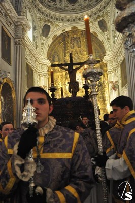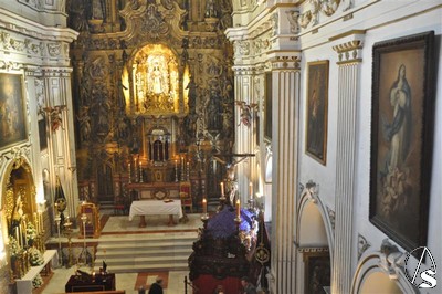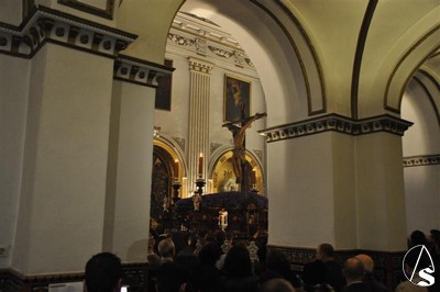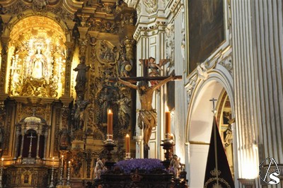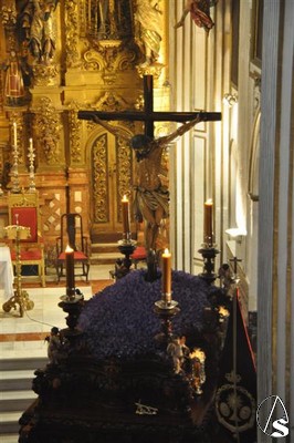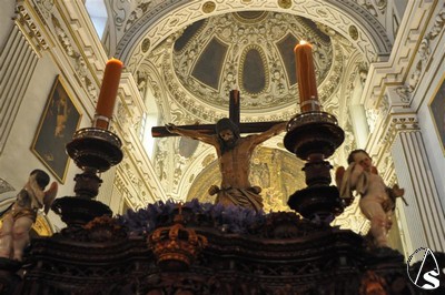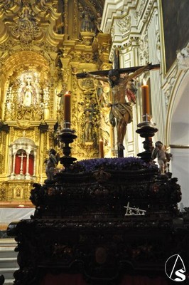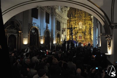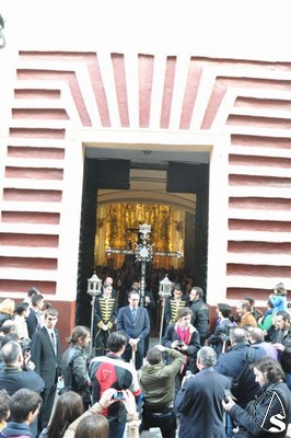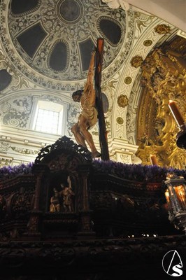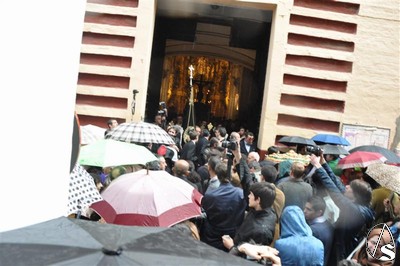 Con el cortejo ya en la calle y el estandarte corporativo a las puertas del Templo, la lluvia hizo su aparición tornando el deseo en frustración. Diez metros separaban el paso del dintel, los suficientes para que la salida extraordinaria del crucificado en Vía Crucis y por primera vez sobre un paso quedara en deseo, no en realidad.