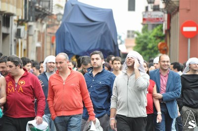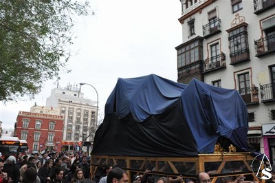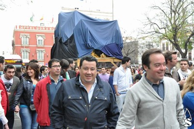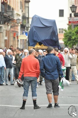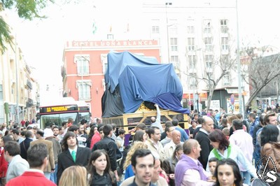 Era la mudá del paso de misterio de la Exaltación, acompañado por ese reguero de costaleros, músicos, jartibles, miembros de juntas, hermanos, familiares, curiosos y todo el elenco que, quizás sólo en esta ciudad, sea capaz de concentrar tanta gente alrededor del traslado de un paso.