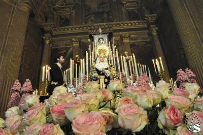 Y ahí estaba Ella en besamanos, con un magno ramo de rosas sin olvidar sus espinas, las mismas que coronaron a su hijo como Rey de reyes antes de portar la Cruz en su hombro camino del Calvario.