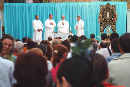 Francisco Santiago. Hay momentos en esta ciudad de Sevilla que apenas si son percibidos, al menos por la gran mayoría de sus habitantes. Y hoy he tenido el placer de acudir a uno de ellos, a la Misa de Romeros y comienzo de la Romería del Inmaculado Corazón de María en la populosa barriada de Torreblanca.