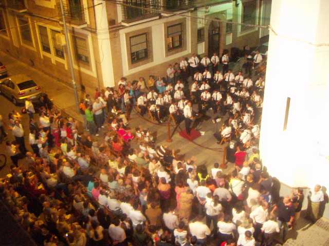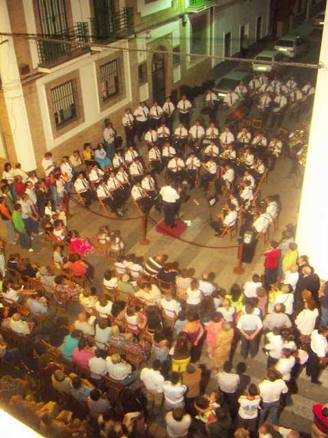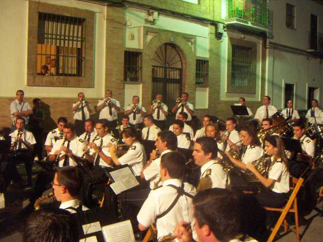 Son las nueve de la noche y la Banda de la Sociedad Filarmónica Cultural Ntra. Sra. del Carmen de la localidad sevillana de Salteras, se prepara para interpretar el concierto con motivo del Besamanos de Ntra. Sra. de las Mercedes. Dicho concierto se dividió en dos partes, la primera estuvo marcada por marchas de distintas Hermandades: "Coronación de la Macarena" (P. Braña), "Ntro. Padre Jesús" (Cebrián), "Virgen de la Palma" (Marvizón) y "Madre de los Gitanos Coronada" (A. Moreno).