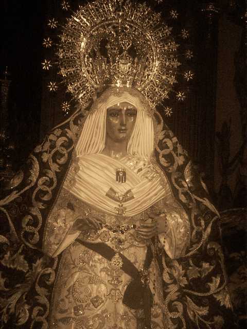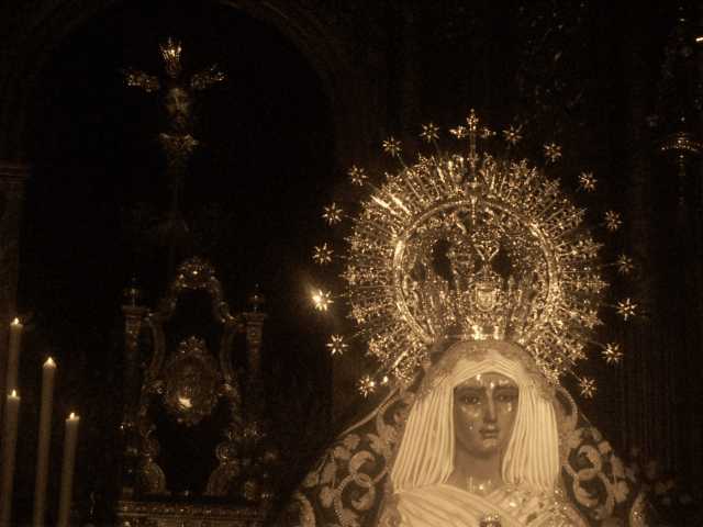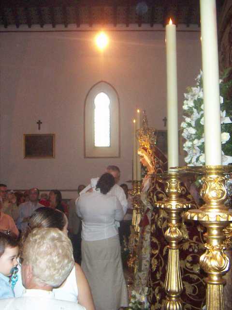 Una vez finalizado el Besamanos a Ntra. Sra. de las Mercedes, queda el momento del día vivido del recuerdo, del estar delante de la imagen de la Virgen y rezarle y contarle las vivencias de su Onomástica. Ella sola bajo un foco de iluminación divina acompañados de una música celestial escucha todo lo que le cuentan los Hermanos de Santa Genoveva. El 24 de Septiembre de 2.006 esta ya aqui Hermanos de Santa Genoveva para poder volver a disfrutar de Ella.....