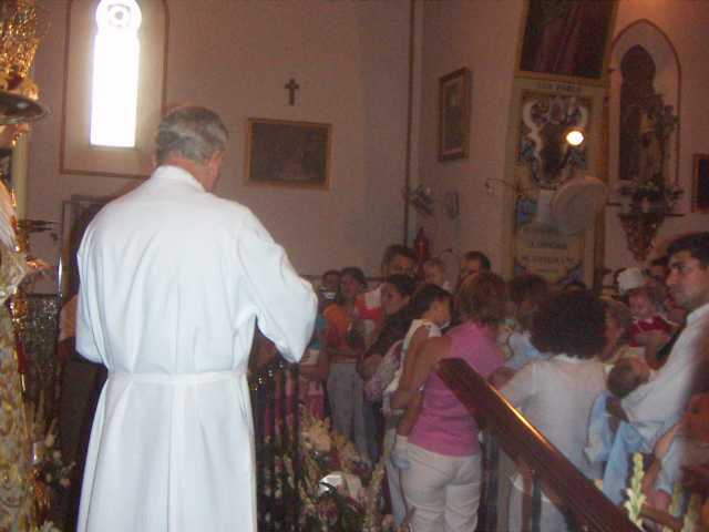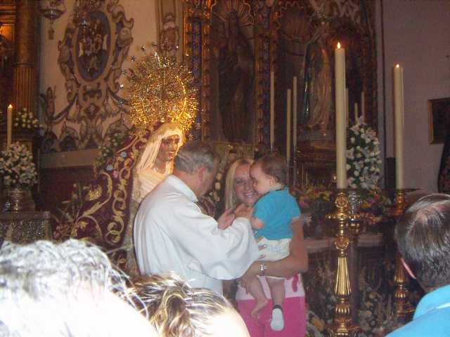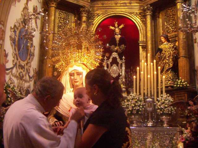 J. A. de la Bandera. En la primera entrega de "Un día con la Virgen de las Mercedes", le vamos a dar detalles del primer acto que ocurrió en el día de ayer -La Presentación de los Niños a la Stma. Virgen de las Mercedes-, donde todos los niños que quisieran acompañados de sus padres se le presentan a la Virgen, como Madre de todos ellos. El Cura Párroco, D. Antonio Palma Palacios, presentó a los Niños a la Madre de Dios, en un día tan especial para el Barrio del Tiro de Linea. Como dato anecdótico en la Presentación estuvo una niña de nacionalidad china, que vive en Sevilla... ¡Las Mercedes de María traspasa las fronteras del mundo Oriental! ¡Que Grande eres Ntra. Sra. de las Mercedes!.