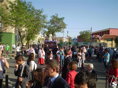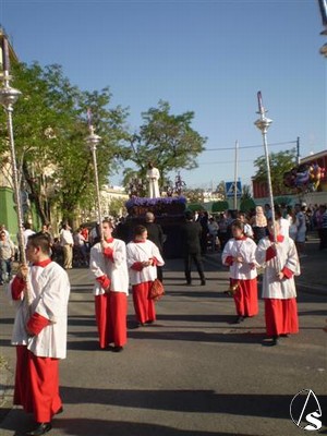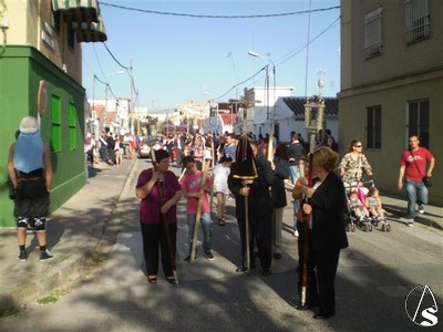 Las cornetas y tambores de la Banda de Ntra. Sra. de los Ángeles puso los sones en esta histórica procesión que esperemos que en años venideros se consolide tal y como hicieron en su día hermandades como Torreblanca, Bellavista, Pino Montano, etc, cofradías de nazarenos hoy pero que ayer fueron asociaciones parroquiales que sacaban a la calle a su Cristo Cautivo.