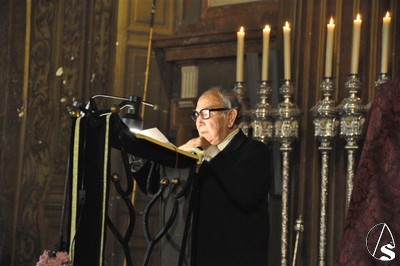 Francisco Santiago. Había expectación por ver el paño de la Verónica de este año 2011, entre otras cosas porque la persona elegida, el tarifeño Gillermo Pérez Villalta, es nada más y nada menos que Premio Nacional de Artes Plásticas 1985. En el acto intervinieron el Hermano Mayor, Félix Hernández, el crítico de arte Manuel Lozano, el propio autor del paño y el periodista Paco Robles.