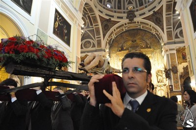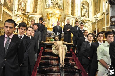 La comunidad de carmelitas descalzos y la Hermandad del Carmen del Santo Ángel, estuvieron acompañadas durante todo el recorrido por el hermano mayor del Carmen Doloroso, Antonio Saldaña y en un principio por el Provincial de la Orden. El portentoso crucificado fue portado por los costaleros de la cuadrilla de José Manuel Palomo.
