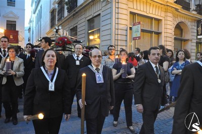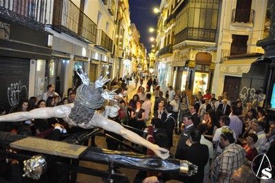 Francisco Santiago. Tras el paréntesis del pasado año, al estar el Cristo de los Desamparados de Martínez Montañés en la Exposición “Lo Sagrado hecho real”, celebrada en Londres y Washington , el viernes 8 de abril de nuevo volvió a recorrer las calles del centro de Sevilla desde el templo del Santo Ángel
