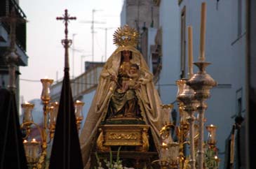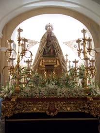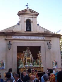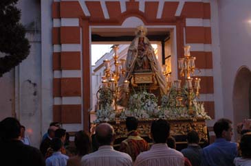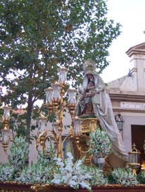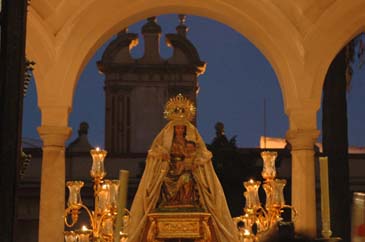 Luis M. Fernández. El sábado 24 de septiembre tuvo lugar la salida procesional de Nuestra Señora de Belén desde la Capilla del Carmen de Calatrava. El paso iba adornado con orquídeas y estrenaba dos faroles laterales.