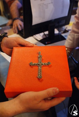 - Pasadores de plata con la Flor de Lys para la imagen de San Juan Evangelista.