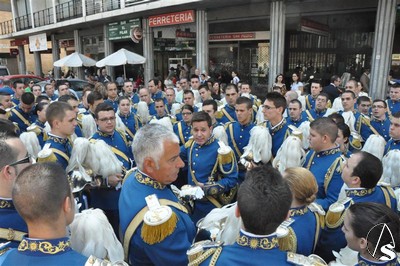 Francisco Santiago. Como es habitual, la Banda de Cornetas y Tambores de Ntra. Sra. del Sol comienza su Domingo de Ramos junto a la parroquia de San Pedro, donde cada año realizan una ofrenda floral a Santa Ángela.