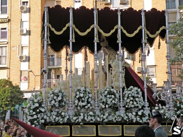 La imagen de la Stma. Virgen es obra del escultor imaginero sevillano nacido en el barrio de la Trinidad Luis Álvarez Duarte, que la esculpe 1987, el paso de palio esta confeccionado en terciopelo liso color burdeos, al igual que el manto de la virgen confeccionado en los talleres de herederos de Elena Caro.