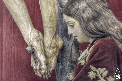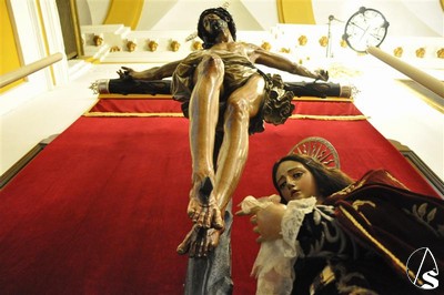 Igualmente, una bella estampa del Crucificado de la Conversión del Buen Ladrón con la Magdalena a sus pies, comtemplaba esta imagen del Tiempo Pascual en el final del Mes de abril y primero de mayo.