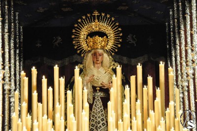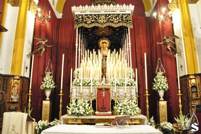 Francisco Santiago. La coincidencia de la fecha de la Semana Santa tan cercana a la festividad de Nuestra Señora de Montserrat, ha hehco que el Triduo a la Titular Dolorosa se haya realizado con la Virgen presidiendo el culto en su paso procesional.