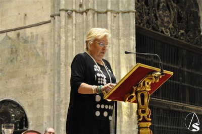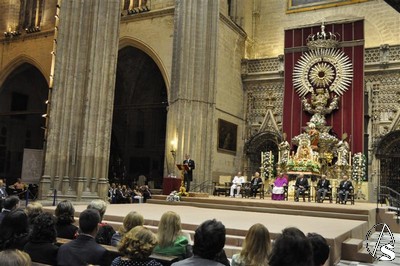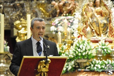 Rosamar Prieto realizó la última presentación a un pregonero, ya que tras las votaciones electorales del 22 de mayo dejará la Delegación de Fiestas Mayores. El delegado de hermandades y cofradías, Manuel Soria Campos, fue la autoridad eclesiástica en el pregón ante las ausencias del arzobispo y del obispo auxiliar.