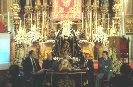 La mesa estuvo presidida por el Guardián del Templo, el hermano mayor del Buen Fin, el Presidente del Consejo, el director del Boletín y Francisco Manuel Delgado Aboza que disertó sobre su aportación a este número sobre “ La Virgen de la Palma a Través de la Historia.