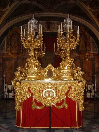 En el coro bajo podremos contemplar el paso procesional de Nuestra Señora y en su entorno diversos elementos del ajuar procesional. En la capilla de Santísima Virgen es donde concluye el itinerario.