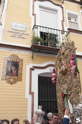 El recorrido fue novedoso ya que el regreso de la comitiva suele ser por la calle Rocío, pero al estar ésta en obras tiró por la calle Santísimo Cristo de las Tres Caídas, Rodrigo de Triana y Vitoria. Para posteriormente avanzar por Pagés del Corro, Evangelista y la entrada en su Capilla.