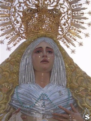 Esta dolorosa que tallara Juan Manuel Miñarro llegó en la noche del sábado hasta lo más alto de Alcalá portada en andas en la denominada marcha mariana. Era la primera vez que una dolorosa, y en este caso la más jóven, entraba en este antiguo templo, a su vez la Virgen de la Oliva devolvía a la patrona esa visita que la Virgen del Águila le realizó el pasado verano en su novena itinerante.